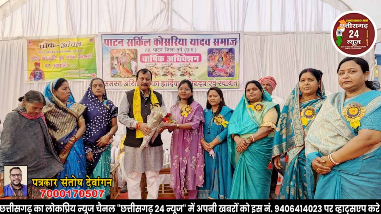अमलेश्वर (पाटन)। पाटन सर्किल कोसरिया यादव समाज, तहसील पाटन का वार्षिक अधिवेशन अमलेश्वर में हर्षोल्लास और सामाजिक एकजुटता के वातावरण में संपन्न हुआ। कार्यक्रम का शुभारंभ भगवान श्रीकृष्ण की प्रतिमा पर माल्यार्पण एवं दीप प्रज्वलन के साथ किया गया।