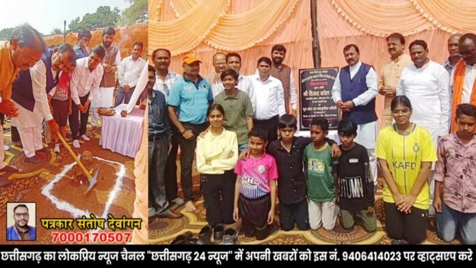 कार्यक्रम में अतिथियों ने विधिवत भूमिपूजन कर निर्माण कार्य की शुरुआत की। इस अवसर पर पूर्व भाजपा जिला अध्यक्ष महेश वर्मा, सांसद प्रतिनिधि प्रमोद सिंह, नगर निगम भिलाई के पूर्व प्रतिपक्ष नेता संजय दानी, जिला ओलंपिक संघ के सह सचिव पोख़न साहू, विकासखंड पाटन के क्रीड़ा अधिकारी संतोष यादव सहित यूथ खेल एवं सांस्कृतिक समिति के पदाधिकारी एवं सदस्य उपस्थित रहे।
