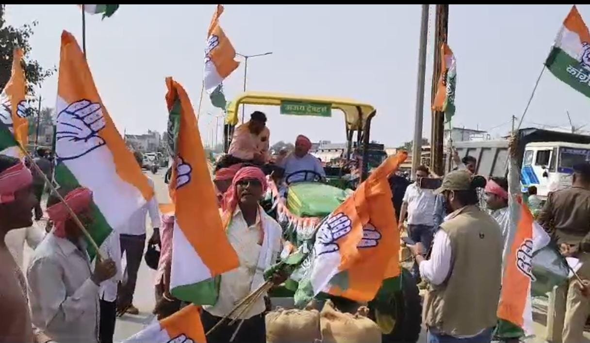 कांग्रेस के इस प्रदर्शन के दौरान एक अनोखा नजारा भी देखने को मिला। कुरूद विधानसभा क्षेत्र के पूर्व विधायक लेखराम साहू ट्रैक्टर चलाकर किसानों के साथ चक्काजाम स्थल पर पहुंचे।