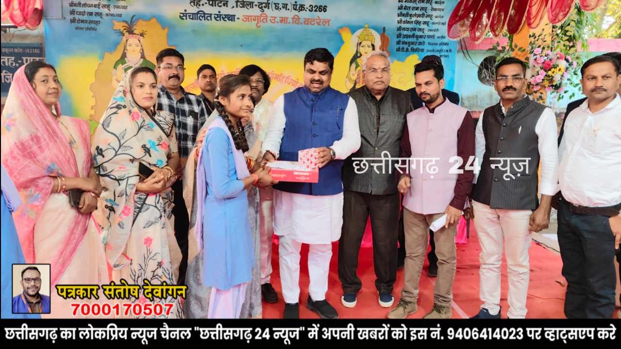 दुर्ग-पाटन/बटरेल: जागृति उच्चतर माध्यमिक विद्यालय बटरेल में वार्षिक उत्सव एवं सम्मान समारोह का भव्य आयोजन किया गया। कार्यक्रम में मुख्य अतिथि के रूप में स्कूल शिक्षा मंत्री श्री गजेंद्र यादव शामिल हुए। उनके साथ विशिष्ट अतिथि श्रीमती रामशिला साहू, जिला पंचायत सदस्य श्रीमती कल्पना नारद साहू, जनपद सदस्य पाटन अजय साहू, ग्राम पंचायत बटरेल की सरपंच श्रीमती एमन आठे तथा विद्यालय के प्राचार्य श्री टी.के. पिपरिया की गरिमामयी उपस्थिति रही।