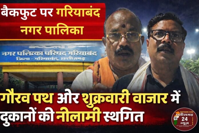 गरियाबंद । नगर पालिका परिषद गरियाबंद द्वारा गौरव पथ और शुक्रवारी बाजार में प्रस्तावित व्यवसायिक परिसरों के निर्माण और दुकानों की आम नीलामी को स्थगित कर दिया गया हैं।