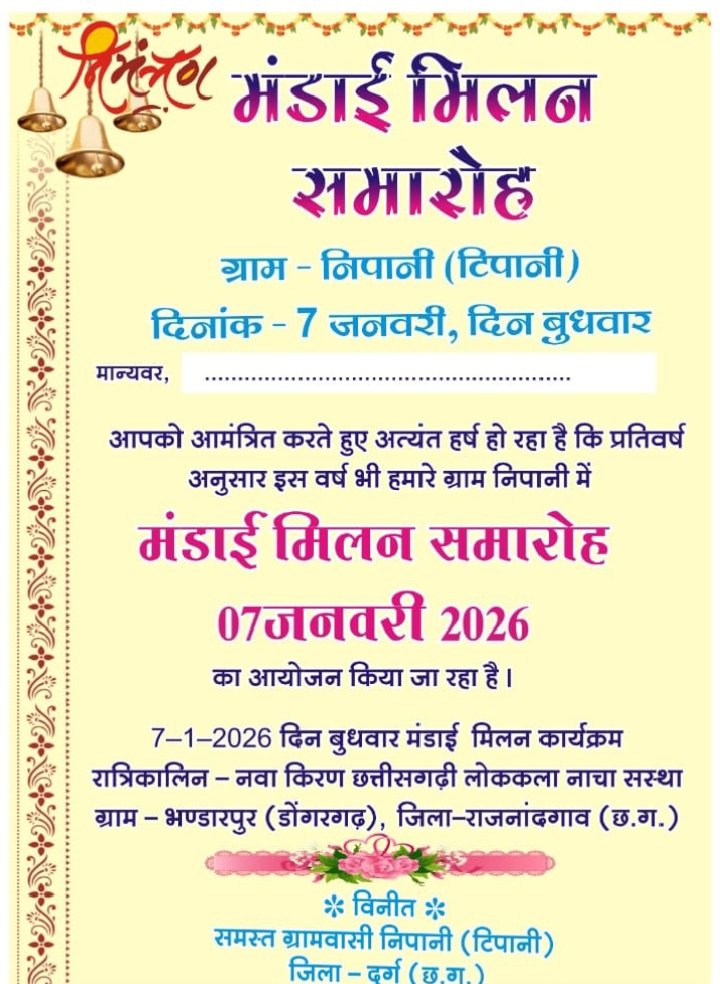 ग्राम निपानी का भव्य मंडाई मिलन समारोह 7 जनवरी को।