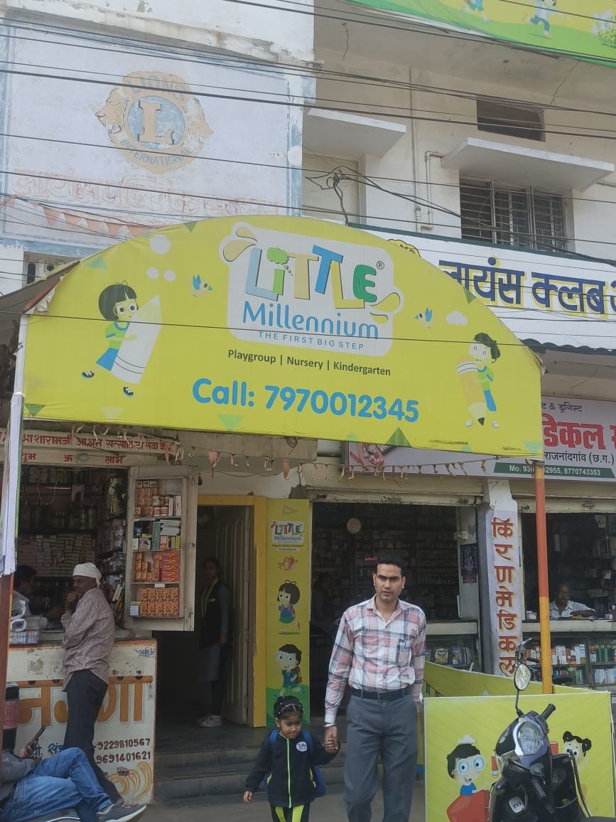 राजनांदगांव _शहर के पुराने हॉस्पिटल के सामने, गुरुद्वारा के बाजू में स्थित ‘लिटिल मिलेनियम (Little Millennium) प्ले-स्कूल’ को लेकर गंभीर सवाल खड़े हो गए हैं। यह स्कूल फर्स्ट फ्लोर पर संचालित किया जा रहा है, जहाँ प्लेग्रुप, नर्सरी और किंडरगार्टन जैसे 2 से 5 साल के नन्हे बच्चे पढ़ने आते हैं।