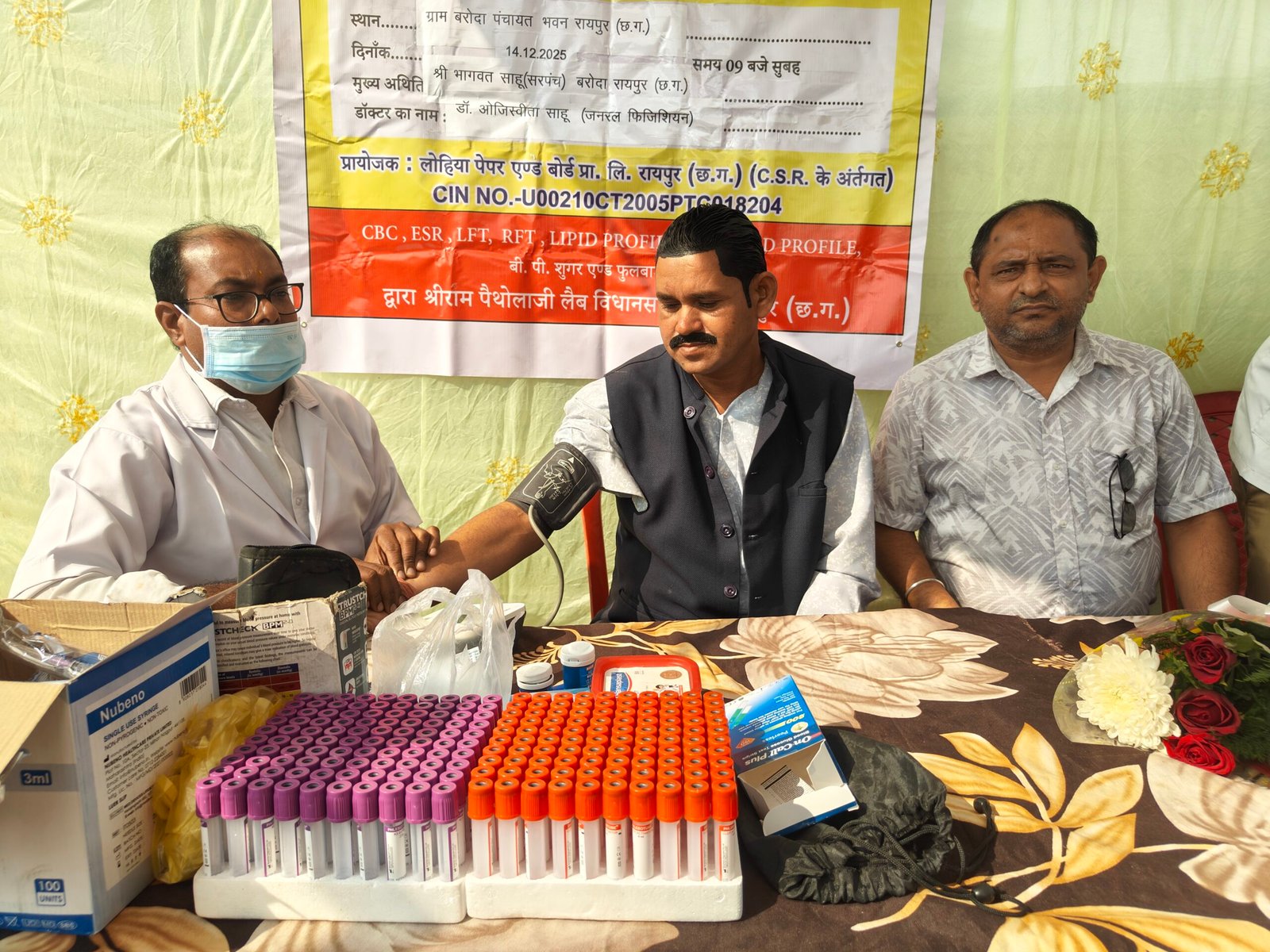 लोहिया पेपर एंड बोर्ड प्राइपेड लिमिटेड रायपुर ने ग्राम पंचायत बरोदा में लगाया निशुल्क स्वास्थ्य शिविर, सैकड़ों ग्रामीणों ने लिया लाभ