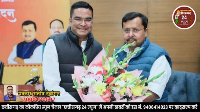 भिलाई नगर : नई दिल्ली में भारतीय जनता पार्टी के नवनियुक्त राष्ट्रीय कार्यकारी अध्यक्ष नितिन नवीन से वैशाली नगर विधायक रिकेश सेन ने शिष्टाचार भेंट कर उन्हें हार्दिक बधाई एवं शुभकामनाएँ दीं।