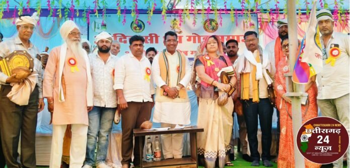 गरियाबंद। गुरुवार, ग्राम आमदी में आयोजित आदिवासी ध्रुव गोड़ समाज 34 मौजा परिक्षेत्र गरियाबंद की वार्षिक महासभा में राजिम विधायक रोहित साहू, बतौर मुख्य अतिथि सम्मिलित हुये । इस अवसर पर आदिवासी समाज ने उनका पारंपरिक नृत्य और बाजे गाजे के साथ भव्य स्वागत किया। कार्यक्रम की अध्यक्षता 34 मौजा परिक्षेत्र अध्यक्ष अशोक मरकाम ने की।