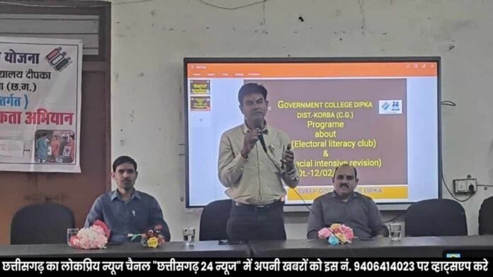 कोरबा-दीपका : भारत निर्वाचन आयोग, नई दिल्ली एवं मुख्य निर्वाचन पदाधिकारी, छत्तीसगढ़ के निर्देशानुसार जिले के युवाओं को निर्वाचन प्रक्रिया के प्रति जागरूक करने हेतु दिनांक 12 फरवरी 2026 को सहायक जिला स्वीप नोडल अधिकारी सतीश प्रकाश सिंह की उपस्थिति में शासकीय महाविद्यालय दीपका में इलेक्टोरल लिटरेसी क्लब (ELC) का गठन किया गया।